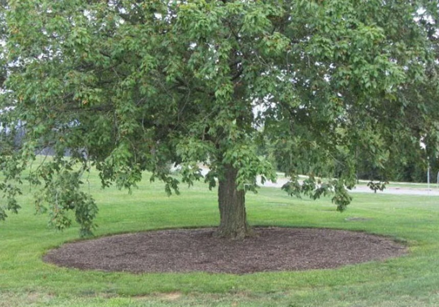 - Keep mulch away from direct contact with tree trunks and the base of shrubs.