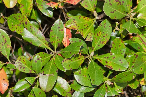 The spots will vary in size and will be seen on the leaf surface. Spots are irregular and measure between 3/16 and ½ inch (0.5 to 1.5 cm.) wide