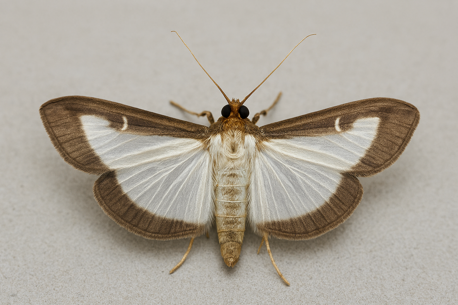 Did you know? Not all box tree moths look the same! While the most common form of them have striking white wings with a dark brown border, there’s also a lesser-known brown morph. These moths are almost entirely brown, with just a small white spot on each forewing. Both color variations belong to the same species and can often be found in the same area.